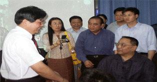 全國政協(xié)副主席、中共中央委員、中國殘聯(lián)主席鄧樸方先生與鄭州臺州商會支部書記兼秘書長、《百花散》傳人梅安富先生親切交談鄭州市腫瘤康復(fù)協(xié)會名譽(yù)會長。2005年5月,作為臺州古代中醫(yī)秘方梅氏《百花散》